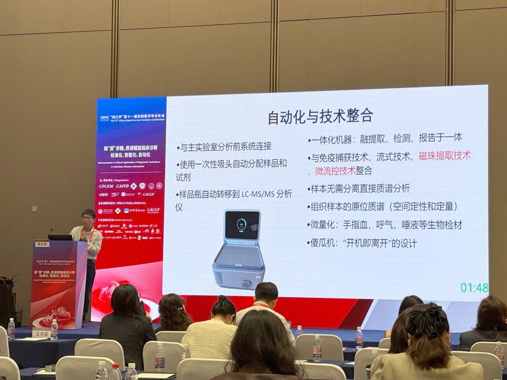 上海徐汇中心医院李水军主任则从临床检验技术发展角度,围绕自动化与技术整合展开分享,特别提及清谱便携式质谱仪的一体化设计与原位进样技术优势。